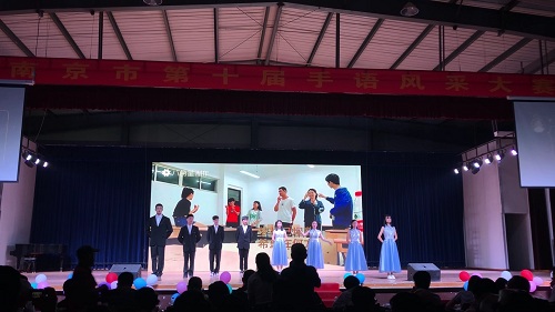 本次大赛由南京市手语联盟主办,南京审计大学金审学院承办,在南京审计大学金审学院大学生活动中心举行。大赛于下午六点整正式开始,出席的嘉宾有中国聋人协会副主席邱丽君,江苏省聋人协会主席吴汉华,南京市聋人协会主席李梦江等多位领导和老师。会上,中国聋人协会副主席邱丽君发表演讲,她讲述了南京市手语风采大赛十年来的历程,以及对手语发展的展望。