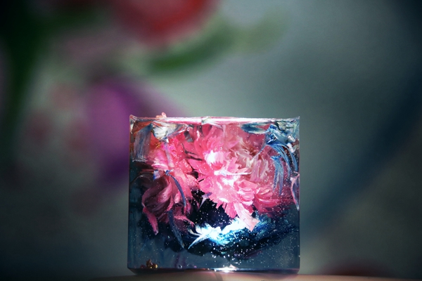 活动开始前,参赛选手了解DIY滴胶的制作过程和注意事项,并挑选所需材料(干花、叶子等)。接着参赛选手们着手制作标本,他们有的独自制作,有的分组协同完成,气氛紧张、热烈,随后工作人员对各自标本作品进行了初步烘干、补胶程序。参赛的作品后期还进行了一周的烘干处理,待其完全硬化之后进行脱模,直至最终完成,并于4月21日中午在食堂门口进行了展示。