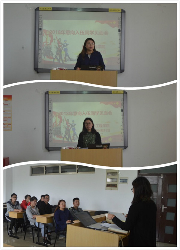 2018年大学生征兵工作目前已在全国范围内展开,为保证预征对象更详细、更深入地理解征兵政策,4月16日中午12点30分,机电工程学院在C504-1召开了2018年意向入伍同学见面会。辅导员李梅主持了本次会议,党总支副书记张蓉出席。