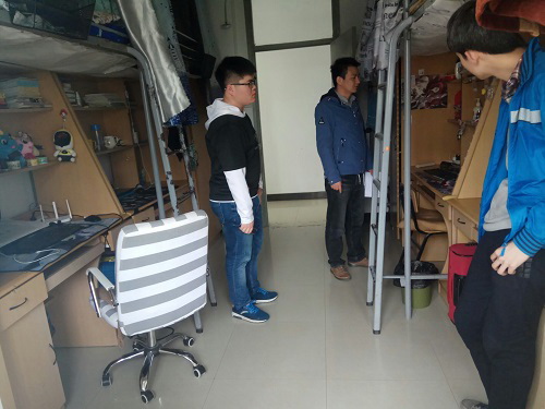 活动中,辅导员们分成五组,深入宿舍与学生们交流谈心,了解学生的思想、学习、生活等动态,同时对宿舍卫生、宿舍安全、宿舍文化、宿舍作风、精神风貌提出了“五位一体”的品质要求。在检查与评比中,对发现的宿舍安全隐患、卫生状况较差等问题也提出了整改要求。