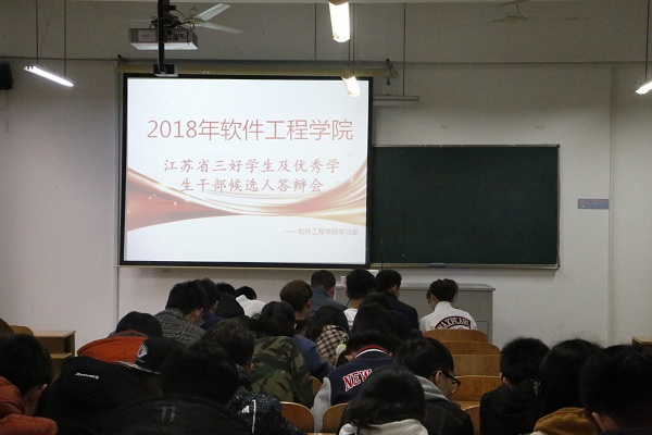 3月23日晚,软件工程学院在1202教室召开2018年度省三好学生及优秀学生干部候选人评审会。团总支书记张理航,全体辅导员出席此次会议。团总支学联主要学生干部,各年级班委作为大众评审参与了本次会议。
