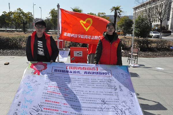 今年是雷锋日设立65周年,为弘扬雷锋精神,提高大学生的奉献精神,电子信息工程学院晨露志愿者服务团队在南北区食堂门口举办了以“学习雷锋精神”为目的的爱心捐赠活动。活动由晨露志愿者服务团队的社长以及社员负责登记捐赠情况,捐赠所得将全部以本校名义用于帮助周围社区、孤儿院以及山区有需要的小朋友。