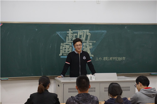建筑工程学院于10月19日下午6:30在5101教室举行《超级演说家》演讲比赛。此次比赛分为命题演讲和即兴演讲两轮,在第一轮命题演讲环节中,17位选手以改革开放四十周年为话题开激烈角逐。选手们从改革开放的时代背景、自身相关经历、改革前后两代人变化等方面发表演说。演讲结束后,评委们根据选手表现评选出张猛,徐露,陈雨露三位同学进入即兴演讲环节。三位同学以“南京”为话题,分享了自己对南京的看法和情感,表达了自己与南京这座古城相遇的感受。最终张猛同学获得此次比赛冠军。