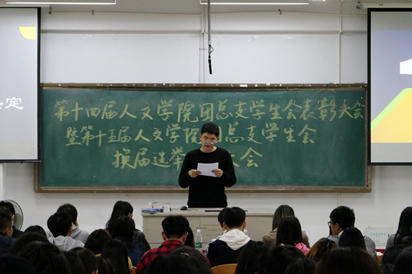 为表彰先进,树立典型,进一步增强学生干部工作的主动性和创造性,10月28日18:30在图教楼B405,人文学院举办了第十四届团总支学生会表彰大会暨第十五届团总支学生会换届选举动员大会。全院各班级学生代表参加了此次大会。