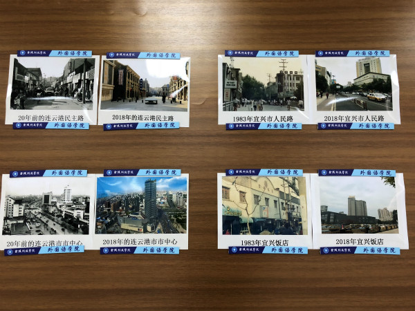 10月中旬,外国语学院通过部门工作QQ群、微信公众号广泛宣传此次活动,号召全院师生提供能反映四十年来家乡变化的图片。截止10月底共征集图片30余张。经过精挑细选,“1980年和2018年的常州火车站”等5组最具代表性的图片脱颖而出,学院在江宁校区8号教学楼二楼外国语学院宣传栏里进行了展览。