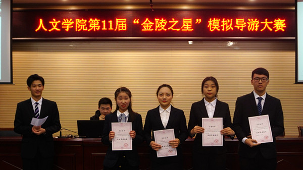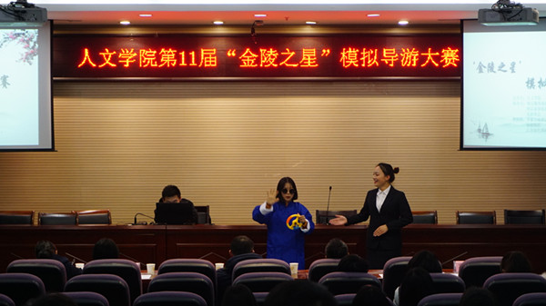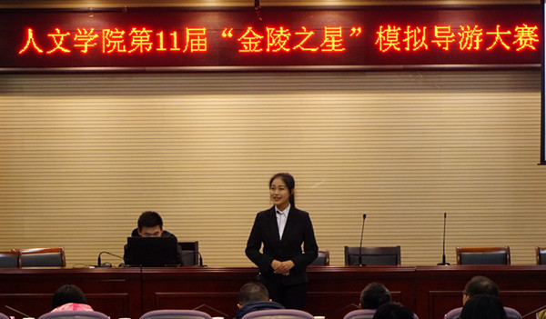 12月7日下午,在幕府校区图书馆报告厅,举行了第十一届“金陵之星”模拟导游大赛的决赛。本届比赛由人文学院主办,由旅游管理专业的两家学生创业公司南京极客旅游文化发展有限公司、南京途易旅游有限责任公司与学生社团“乐游协会”共同承办。同时,本届比赛还得到了南京华泰万丽酒店、金陵饭店和江苏绿色国际旅行社三家合作单位的联合赞助。决赛特别邀请了江苏绿色国际旅行社总裁杨志龙先生担任评委组长,由人文学院副院长张维亚教授、旅游管理系的汤澍、徐子琳、陈玲玲、辅导员高欢欢等老师担任评委。