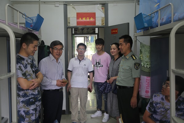 走入宿舍,军训新生正认真的整理内务。叶海青书记对他们表示了亲切的问候,询问了新生有关生活方面的问题,四海一家亲,希望他们能在学校愉快地度过中秋佳节及大学四年生活。