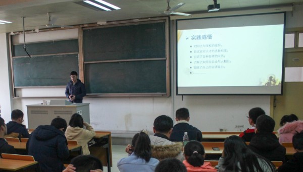 11月28日中午12时30分,电子信息工程学院召开2018暑期社会实践表彰大会,院团总支副书记黄振辉主持大会,学院四位辅导员吴丹、李岩、邹文荣、梁咪咪应邀出席,与现场的两百多名18级新生观观看此次表彰大会。