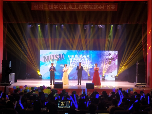 为努力营造积极向上、健康文明的校园文化气氛,材料工程学院与机电工程学院共同主办的“乐享金科、歌传金陵”歌手PK大赛于11月24日在大活千人剧场隆重举行。材料工程学院辅导员邵云龙应邀出席并担任评委,活动还邀请了第15届校园十佳歌手冠军扎西曲扎、第16届校园十佳歌手十强问捷、合唱团团助张钧凯、舍歌大赛冠军郑臣、机电工程学院乐成担当评委。