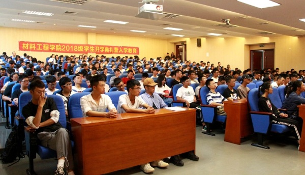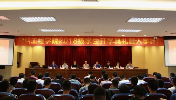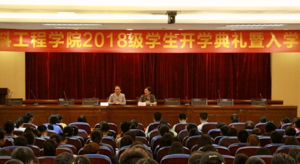 为让2018级新生尽快适应大学生活,2018年9月28日,材料工程学院在图书馆第二报告厅开展了2018级新生开学典礼暨入学教育大会。材料工程学院党总支书记陆秋林、院长郝凌云、副院长叶原丰、党总支副书记陈智慧、学工办主任邱勤、教务科副科长陈莉莉,以及全体辅导员参加了本次会议。