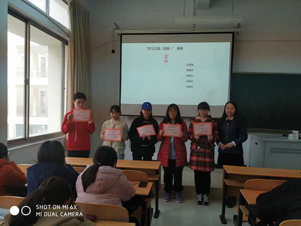 会上首先由在四级考试中取得高分的5位同学分享了他们的英语学习经验,5位同学幽默风趣地分享让向同学们了解到英语学习的不同方法。分享结束后,李星副书记为5位同学颁发“学习之星”奖状,肯定了五位同学取得的优异成绩,鼓励大家互相分享学习经验,向优秀同学看齐。