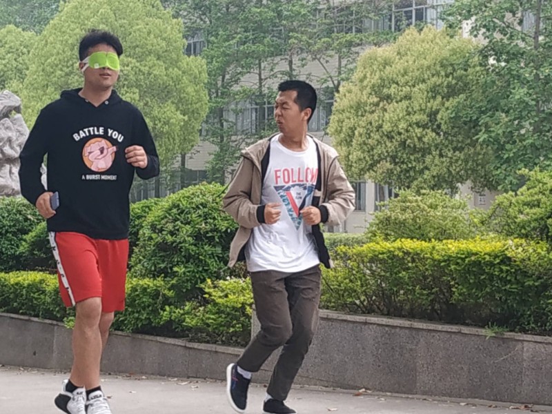 盲行活动以两人一组、十组一起出发的形式进行。先由一人用眼罩等工具蒙住眼睛当“盲人”,另一人当引路者,从北区旗杆出发沿活动路线到达目的地,之后两人交换身份,再沿原路线返回北区旗杆。活动中引导人要换位思考,发指令时需简单准确,“盲人”要充分信任伙伴,做到有效沟通、共同协作,最终安全走完全程。