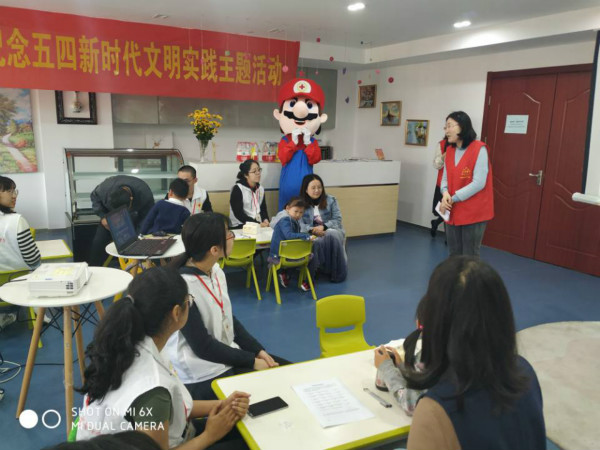 为了纪念伟大的“五四”运动100周年,弘扬爱国、民主、进步、科学的“五四”精神,提高同学们珍爱生命、关爱他人的意识,4月27日上午,外国语学院V-angel志愿服务社的同学们在江宁大学城社区212室,参与了江宁大学城惠民驿站服务中心举办的中外医学生进社区之“五四”特别活动。
