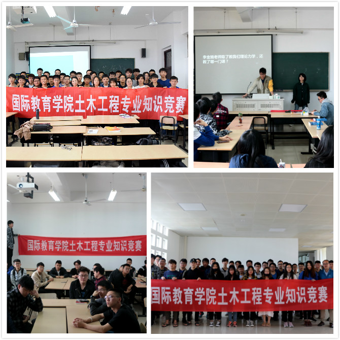 为进一步增加国际教育学院中英土木工程项目的学生对专业和项目的了解,为学院开展项目合格性评估的下一阶段工作打下良好的基础,国际教育学院于5月初分班级组织召开了中英土木工程专业知识竞赛。国际教育学院党总支部副书记郑庆秋和班主任老师参加了此次活动。