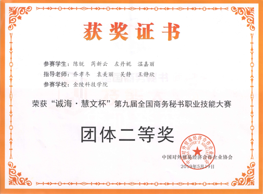 附:beat365正版唯一官网必一人文学院在第九届全国商务秘书职业技能大赛获奖情况