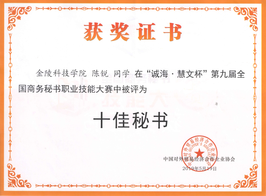 “十佳秘书”:陈锐
