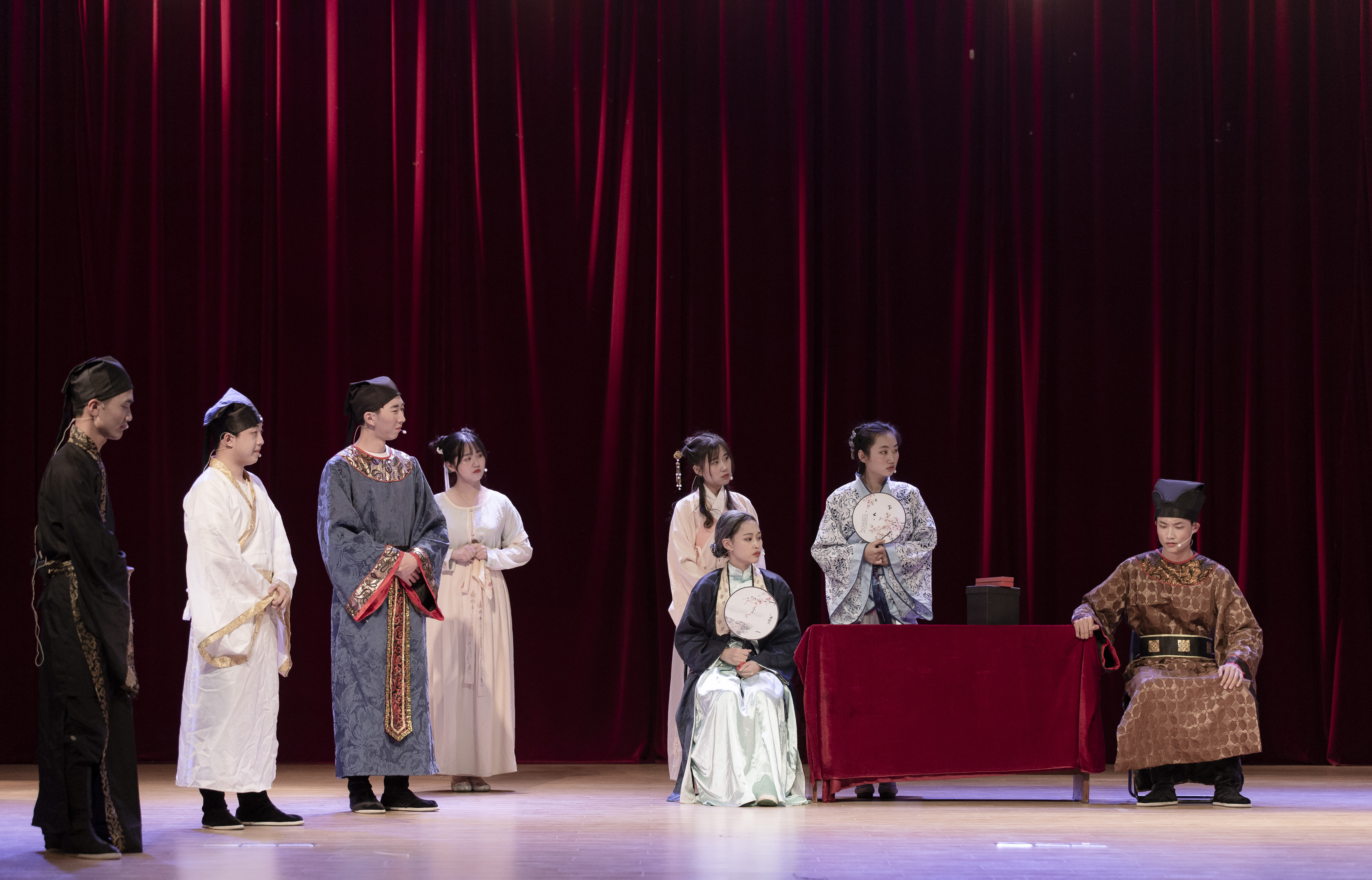 原创话剧《大明城墙》选取1366年明朝初建,以修筑城墙为主线,塑造了张子昂、宋阳明、沈万山、刘伯温、陆贤等群像,既歌颂清正廉洁、克己奉公的优秀品质以及为国分忧的民族担当精神,又赞扬工匠精神。本剧是我院金陵剧社演出第十三场,演员均来自我院17级二年级学生,他们已经是该剧的第三批演员。同学们利用课余时间仔细研读剧本,在刘老师的指导下,倾注的饱满的热忱,将历史故事与传统表现艺术巧妙融合,呈现了一场了更具感染力和冲击力的视听盛宴。