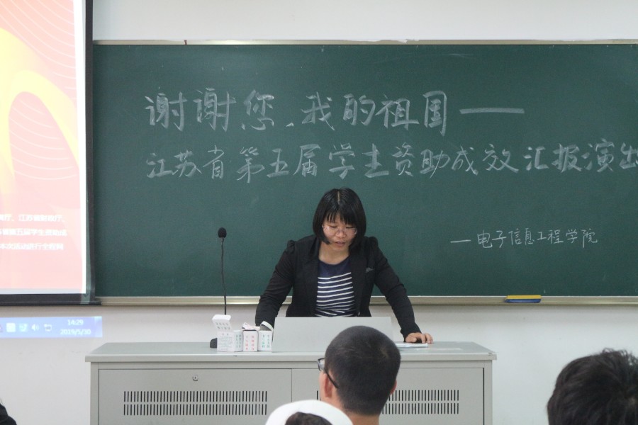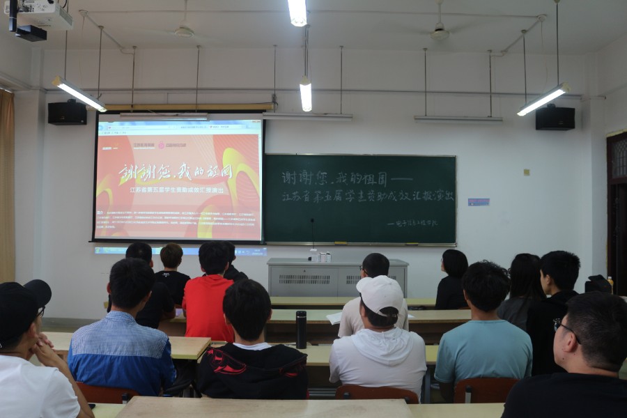 为庆祝新中国成立70周年,进一步宣传党和国家学生资助政策取得的成效,根据上级主管部门和学校要求,在辅导员邹文荣的组织下,电子信息工程学院学生于5月30日下午在江宁校区1405教室观看了《谢谢您,我的祖国——江苏省第五届学生资助成效汇报演出》网络直播。