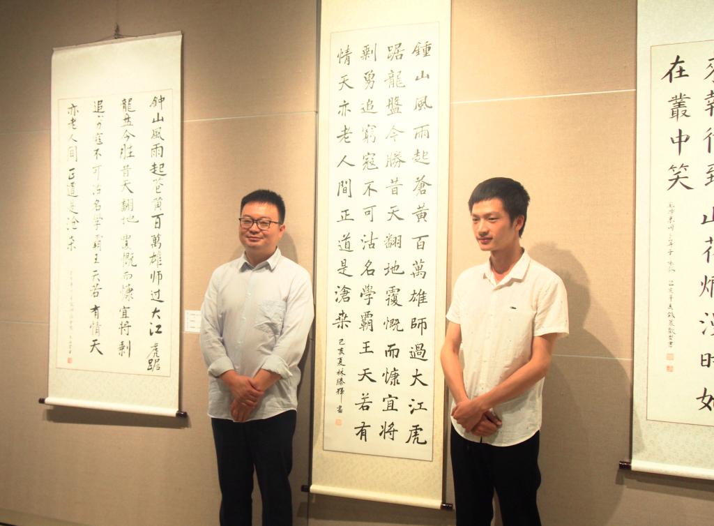 6月20日上午,“翰墨丹青颂祖国”beat365正版唯一官网必一人文学院庆祝新中国成立70周年师生书画展在栖霞区文化馆美术馆306厅正式开幕。本次书画展由人文学院主办,栖霞区文化馆、人文学院国学社承办,栖霞区文化馆馆长赵君、文化馆美术馆主任史绪,动物科学与技术学院党委书记王昭诚、人文学院院长张维亚、党委副书记周建峰、副院长赵步阳,古典文献系系主任杨卫军、汉语国际教育系教师陈锐、章澄等出席了本次书画展。