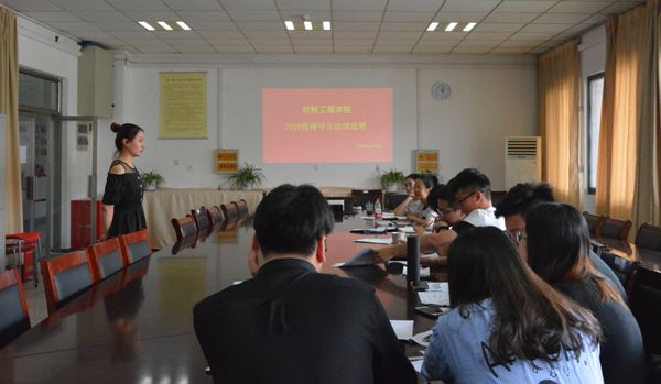 为选拔一批政治素质高、综合能力强的新生辅导员助理,2019年6月26日中午12 : 30,材料工程学院在工科楼会议室举行19级辅导员助理选聘大会。材料工程学院党委副书记陈智慧携全体辅导员和2018级辅导员助理出席了本次选聘大会。