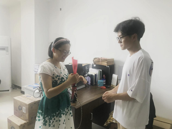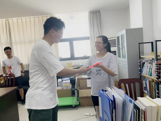 一大早,同学们就来到学生工作办公室,在贺卡上写上了自己对老师想说的话和浓厚的祝福,包装好每一束鲜花。随后,学时们手持着鲜艳的康乃馨走进了教师们的办公室,把鲜花和祝福都送给了老师们。现场收到鲜花的老师们表示非常的感动。
