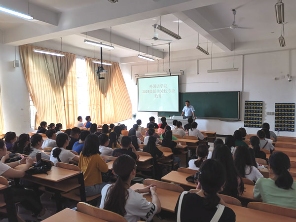9月10日上午,在第35届教师节这个特殊的日子,外国语学院副院长张志刚和英语教研室主任李凤老师在5107教室,给2019级新生们开展了爱校教育和专业认知教育。