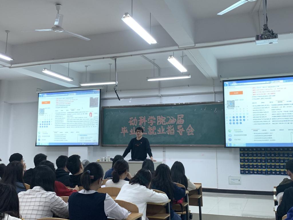 为增强我院学生就业意识,提高我院学生就业质量。2019年10月15日18点,我院在图教楼B405举行了2020届毕业生就业指导会。本次指导会邀请了招生与就业处的肖垚老师担任主讲,我院党委副书记汪如春老师和2016级辅导员魏鹏老师以及2020届全体同学参加了本次就业指导会。
