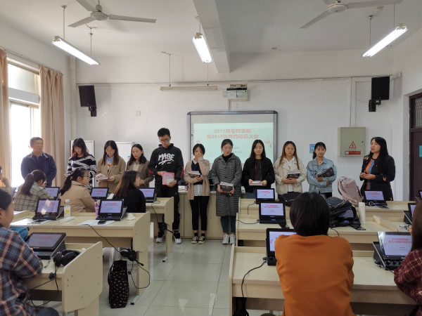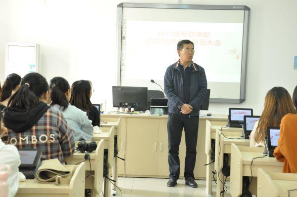 10月30日下午,外国语学院在8301教室召开了英语专业四级考试表彰暨动员大会。参加本次会议的有外国语党总支部书记李星,外国语学院副院长张志刚,英语系主任李凤老师、副主任王喆老师,辅导员杨婷、胡笛,17级学生代表以及18级全体学生。