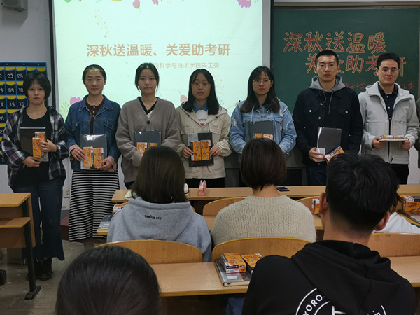 近几年我院研究生录取率逐年提高并一直名列学校前茅,这些成绩的取得离不开我院学子的勤奋刻苦,认真好学,更与我院高度重视和关爱学生考研息息相关。本次学院关工委开展“深秋送温暖,关爱助考研”活动是在学院党委的领导下,坚持“立德树人”,关心大学生健康成长,为贫困大学生办好事、办实事的具体体现。
