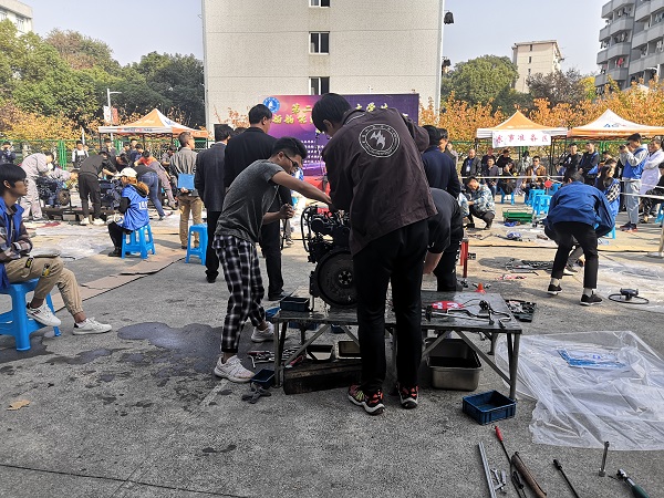 动力设备创新技能大赛共有39支队伍进入决赛并进行了激烈的角逐,充分展示了在校大学生专业技能学习和实际运用相结合的成果。我院2017级车辆工程专业的李兴州、完颜进嵩、蔡明宇三人组成的拆装团队在技能赛中表现突出,拆装一台CZ380柴油发动机比赛用时47分钟22秒,操作规范、娴熟,发动机一次性启动成功。他们在近两个月的训练中,指导教师积极准备,从虚拟设计、仿真实验、实践操作技能等三个方面对参赛学生进行了系统的培训与指导。一次次重复的训练,提升了团队默契、提高拆装速度、保证拆装准确度。凭借对拆装浓厚的兴趣,参赛队员们每次完成后都很有“成就感”,动手能力得到极大的提升。该比赛要求学生在理解原理的基础上,完全掌握船用柴油机的结构、拆装工艺和故障检测维修的知识才能获取好成绩。同时,该赛事要求过硬的理论知识,扎实的实践动手能力和空间想象能力,默契的团队协作能力以及队长的领导力。