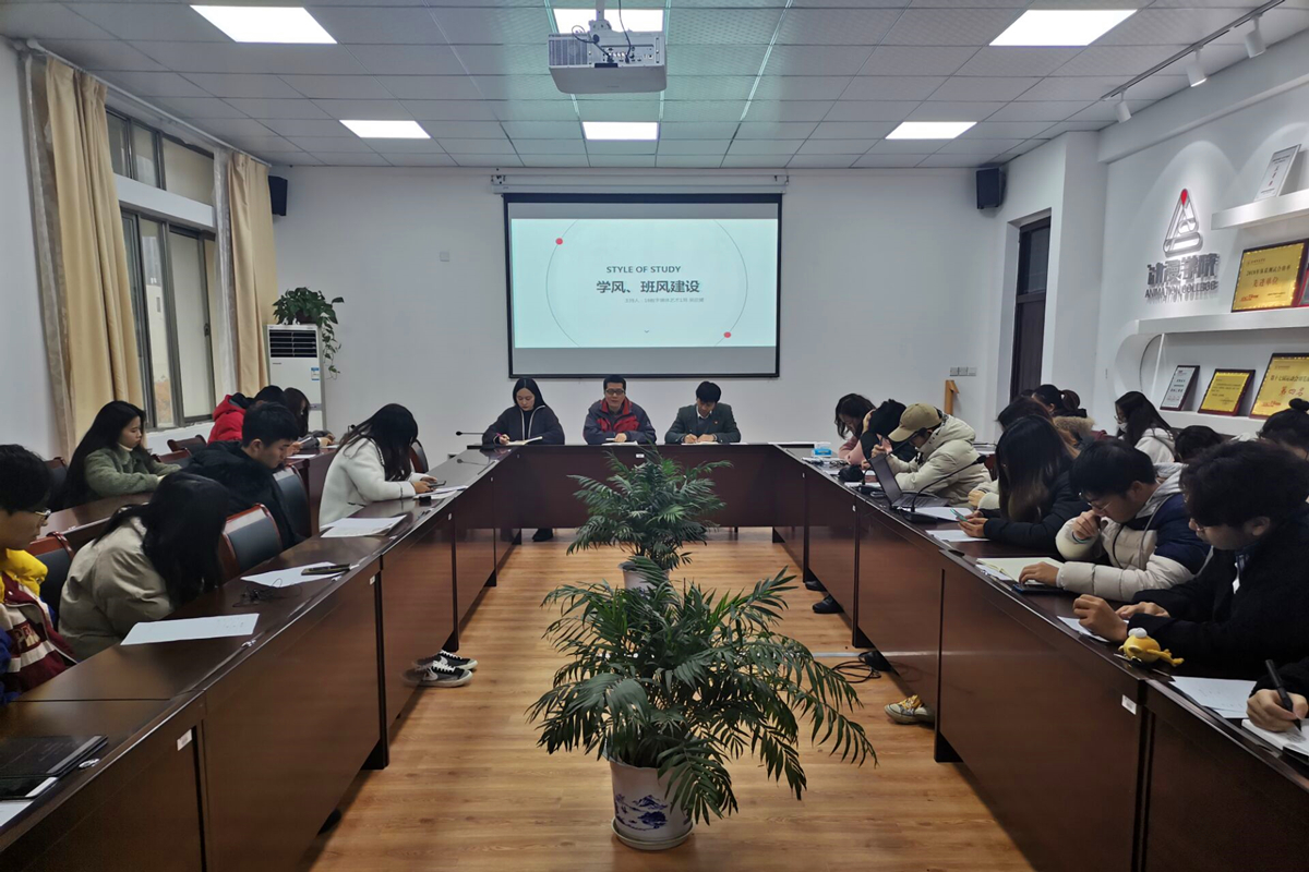 12月17日中午,动漫学院在7406会议室,召开了2019年度学院学风建设优秀集体朋辈榜样报告会。动漫学院党总支部副书记、副院长匡才远,辅导员聂钰石老师,班主任代表王月恒老师,2019年度省级“先进班集体”16数字媒体艺术(1)班班长吴欣媛同学及全院各班代表参加了会议。