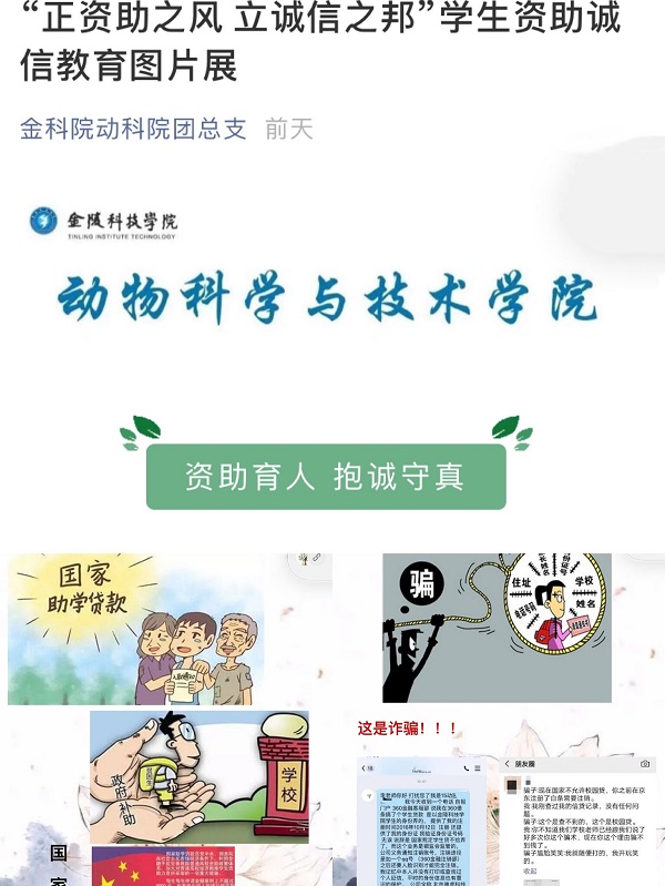 诚信主题教育图片展,全部采用线上模式宣传国家助学贷款及其他资助政策,普及金融、征信等相关知识,罗列诚实守信先进事迹,倡导契约精神,引导学生树立诚信观念,增强金融风险意识,将诚信教育转化为大学生自觉的素养和行为。