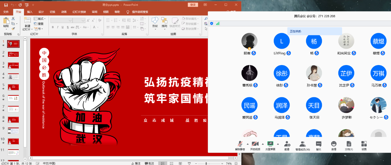 班会上通过视频讲述战“疫”先进典型事迹,故事中的每一个主人公都在给武汉这座城带来希望,正所谓城市有光就不会黑。他们怀着使命感,坚守工作,努力生活,发现自己的热爱。同学们发表了自己的感想,分享了身边的抗疫故事,这些真实的故事,让同学们感受到我们的安定生活背后离不开英雄们的付出。