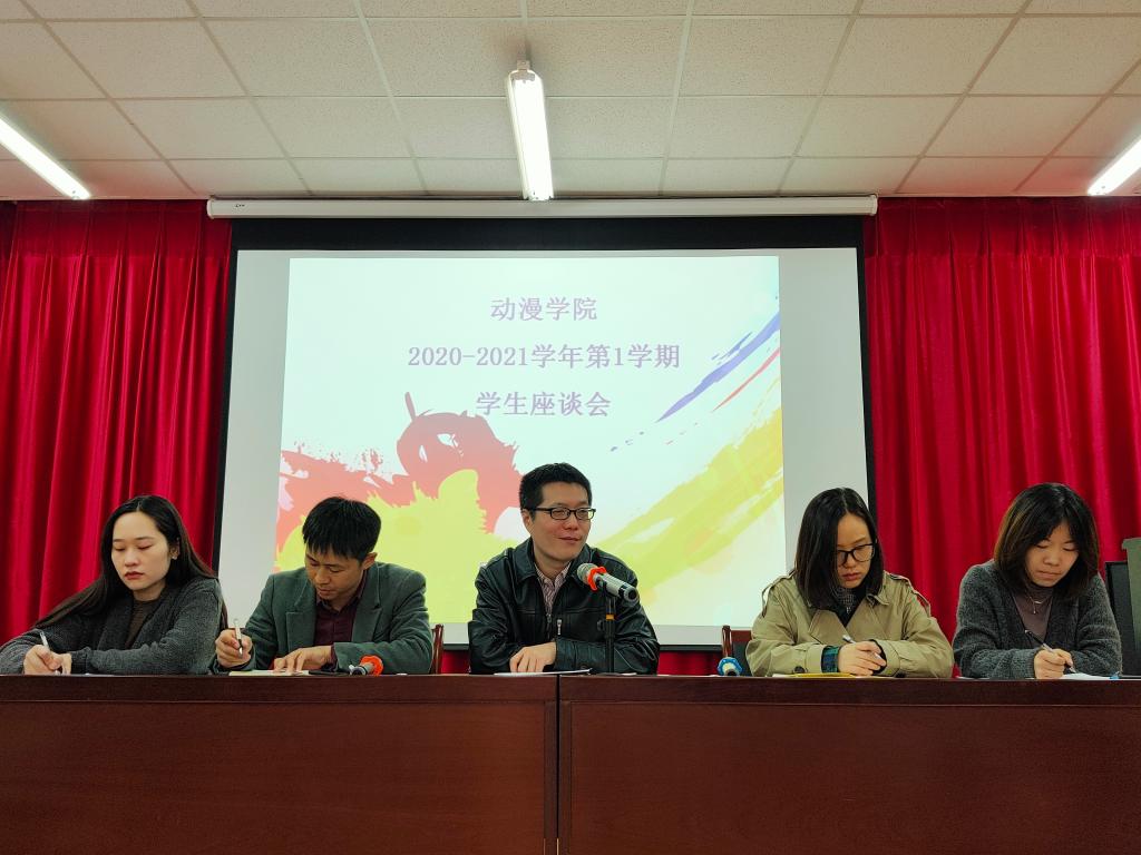 11月3日,动漫学院在7105教室召开了2020-2021学年第1学期学生座谈会。动漫学院党总支部副书记、副院长匡才远,学院教学管理办公室副主任刘丹老师,辅导员聂钰石老师、王月恒老师、李海晶老师,各班班长、学习委员参加了本次座谈会。