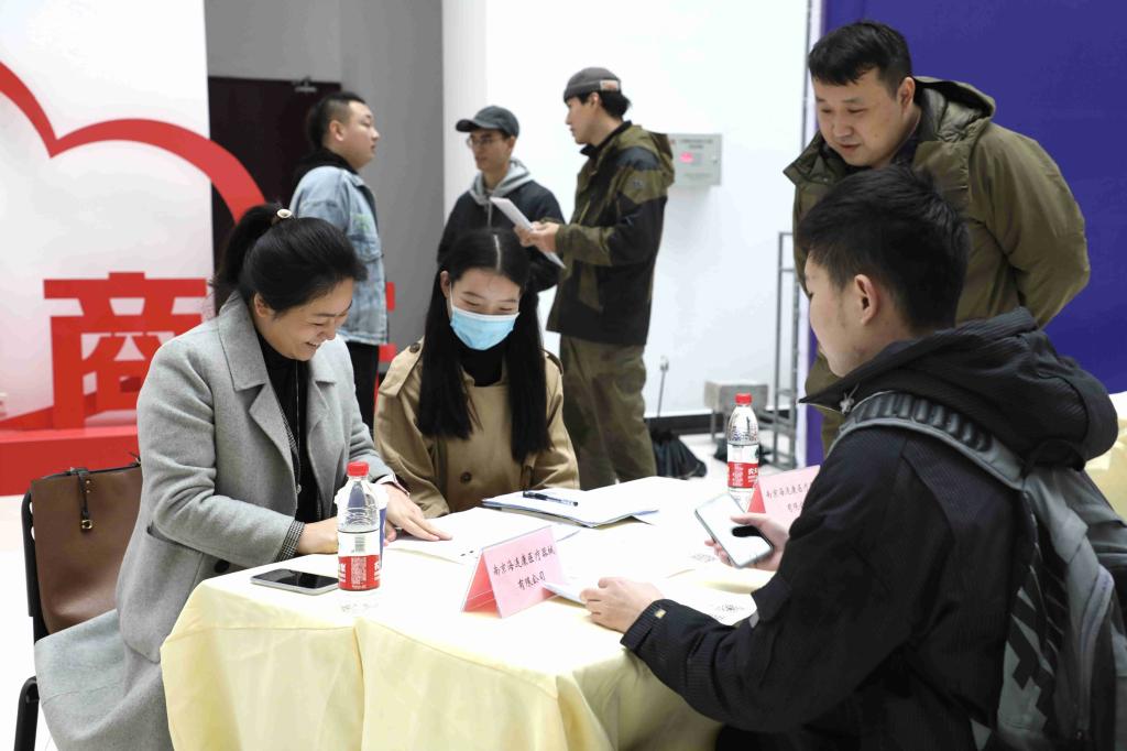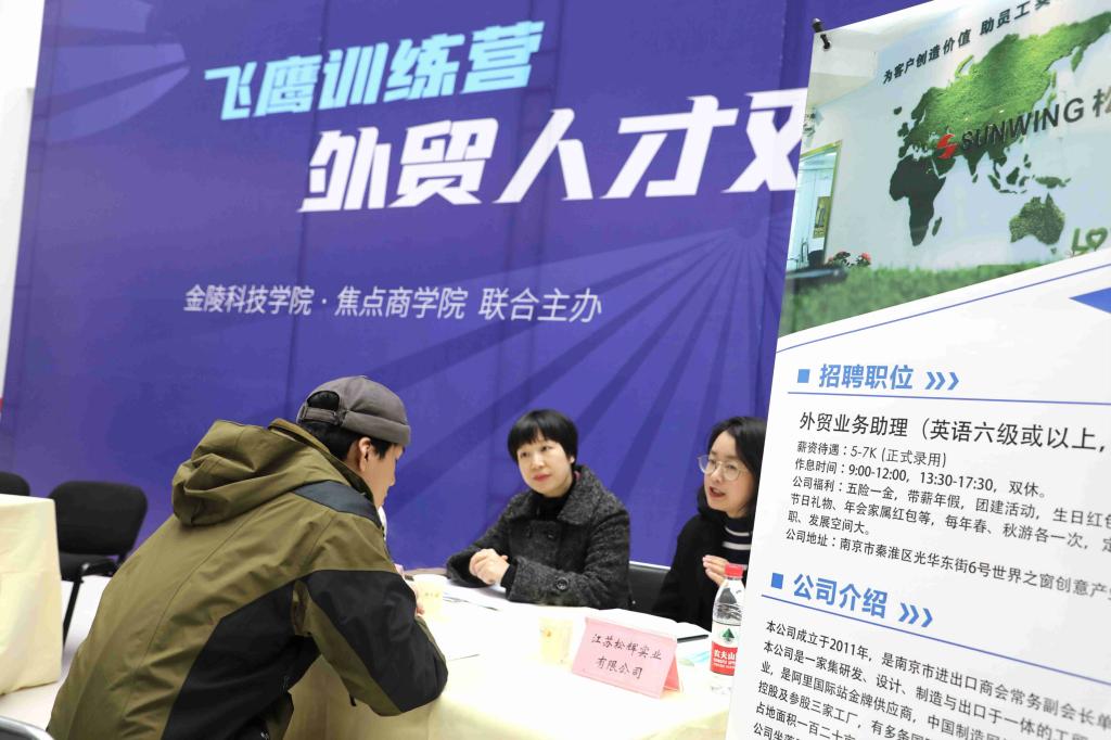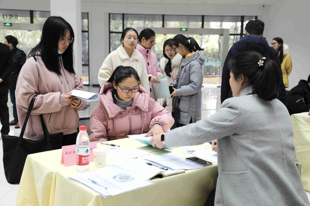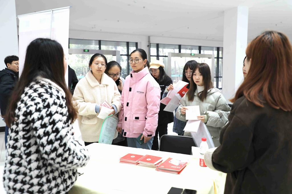 11月25日下午两点,在beat365正版唯一官网必一科技园3号楼,商学院贸易系举行了2021届贸易类专业毕业生专场就业双选会。参加此次双选会有来自南京、苏州等共十余家外贸类企业,提供了45个就业岗位。招就处闵光琛处长等领导到双选会现场进行指导,并与招聘人员、贸易系专业负责人及应聘学生进行了交流。