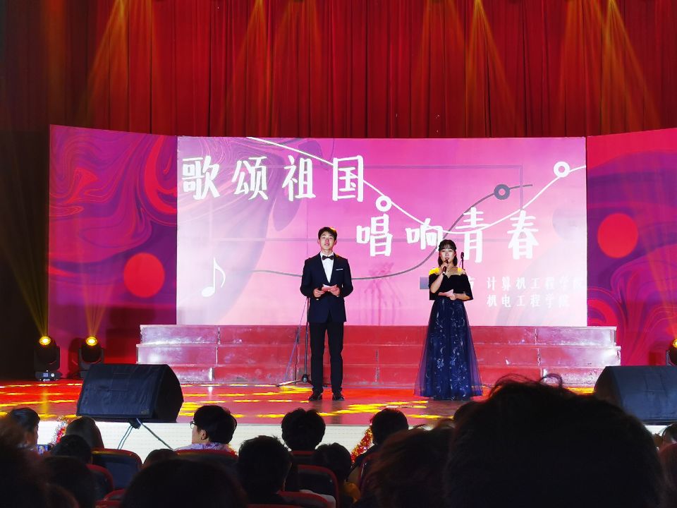 为了增强同学们的爱国主义精神,激扬青春活力,计算机工程学院与机电工程学院联合举办“歌颂祖国,唱响青春”诵歌会,12月11日晚在大学生活动中心剧场进行了决赛。
