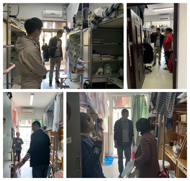 在检查过程中,排查了宿舍是否有大功率电器,是否有乱拉电线等安全隐患,检查了宿舍卫生环境,对个别门窗紧闭、卫生环境差、电线较多的宿舍同学进行了教育引导。吴有龙就日常生活学习和学生进行了交流,叮嘱同学们注意宿舍用电安全,保持宿舍空气流通,创造良好的宿舍环境,强调加强宿舍文明建设,塑造安全、和谐宿舍的意义。