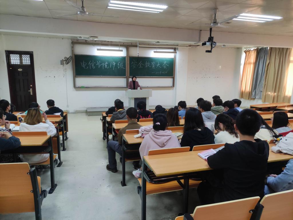 为增强同学们的安全防范意识,提高同学们的安全防范能力,全面普及校园安全常识,电信学院4月5日至9日各班级、各年级分别组织开展了安全教育主题班会、安全教育年级大会,会议由各班班主任及年级辅导员主持。