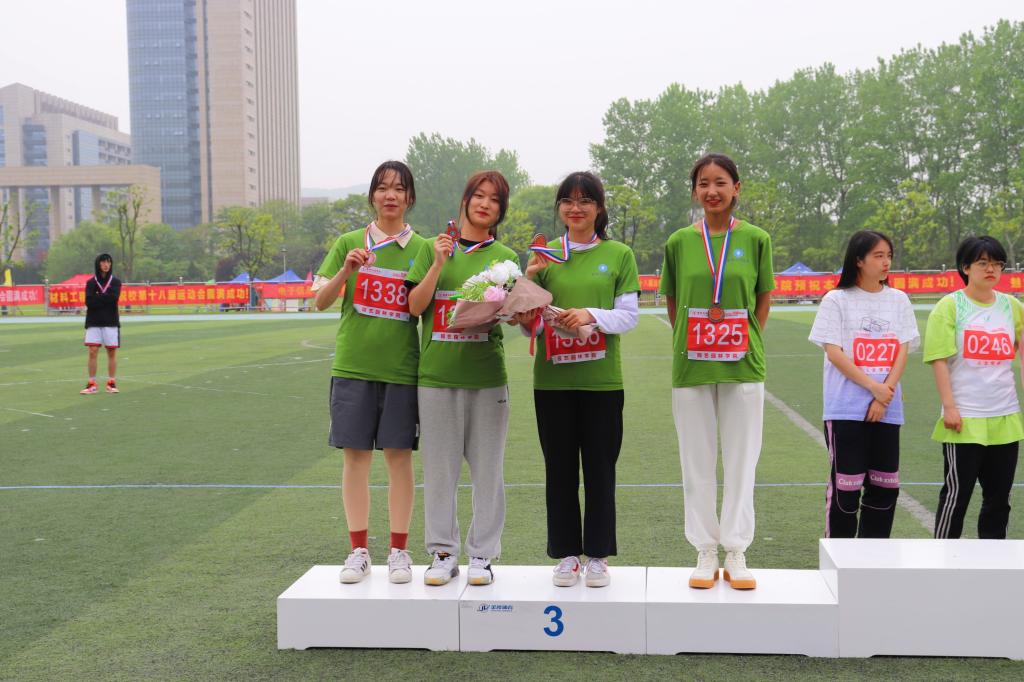 在同学们的团结合作,共同努力之下,我院以团体总分第二名的优异成绩,荣获第十八届运动会体育道德风尚奖。在20*50米接力赛中,本院以2′35″39的好成绩取得了第一枚奖牌;女子800米赛跑,朱沁媛荣获第一名;110米男栏,郭正荣获第二名;男子200米赛跑,薛星宇荣获第三名,宁冲荣获第八名;男子400米,宁冲荣获第七名;男子800米赛跑,沈左霖荣获第三名;男子1500米,喻浩荣获第七名;女子4×100荣获第三名;男子4×100荣获第四名;男子跳高,郭正荣获第八名;男子跳远,束永康荣获第八名;男子铅球,李航荣获第八名!啦啦操也在广播操比赛中荣获二等奖的优异成绩!