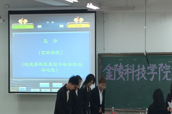 本场辩论赛的正方辩手是艺术学院,他们的论题是“韬光养晦更是现今社会的生存方式”;反方辩手是园艺园林学院,他们的论题是“锋芒毕露更是现今社会的生存方式”。比赛过程中,我方辩手们旁征博引、团队配合默契,在自由辩论环节唇枪舌剑、步步紧逼,他们风格独具,或犀利,或温婉,或沉稳,带给评委及观众们多样化的思维碰撞。评委表示,我院队伍的发言着实精彩且打动人心。本场比赛双方打得难解难分,为现场观众奉献一场精彩绝伦的比赛,最终,我院经过激烈的角逐,最终斩获胜利。