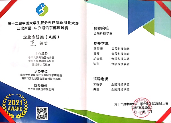 6月2日-4日,由教育部、商务部与无锡市人民政府共同主办,南京大学承办的第十二届中国大学生服务外包创新创业大赛东部区域赛举行了决赛,本次大赛面向全校宣传,共有来自软件工程学院、计算机工程学院、机电工程学院、电子信息工程学院、商学院等多个学院20支参赛队伍,90名学生,24位指导教师参与本次比赛,最终StackFarm软件创新实验室的御行智辅和码农向前冲两支队伍晋级东部赛区区域赛决赛且分别荣获企业命题类(A类)东部赛区一等奖和东部赛区二等奖,御行智辅队伍成功进入国家总决赛。