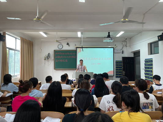 魏鹏老师向同学们宣讲了我国从新民主主义社会过渡到社会主义社会的那段峥嵘岁月。他从新民主主义社会的基本特征,党的过渡时期总路线的提出和社会主义改造的完成及其重大意义三个方面阐述了中国共产党是如何带领全党全国人民进行社会主义革命,建立社会主义制度,从而为实现国家富强和人民幸福奠定物质基础和物质条件。