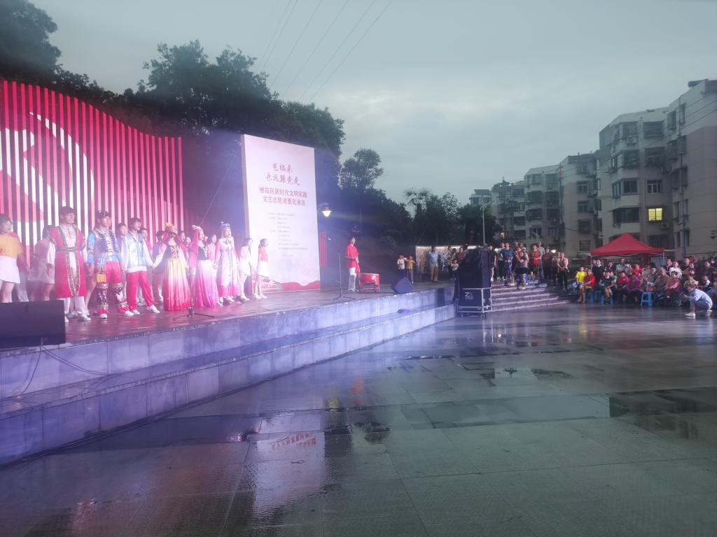 6月18日下午,在幕府山庄社区,由栖霞区文明办、栖霞区文联、燕子矶街道办事处主办,“艺栖来·永远跟党走”栖霞区新时代文明实践文艺志愿者惠民演出圆满举办。我院合唱节目《国家》在辅导员高欢欢老师带领下,倾情参加了演出。