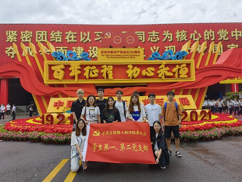 为庆祝中国共产党建立100周年,落实党史学习教育,7月4日计算机工程学院学生党员在学生第一党支部书记周倩如的带领下前往南京国际博览中心,参观“百年征程,初心永恒”——中国共产党在江苏历史展。