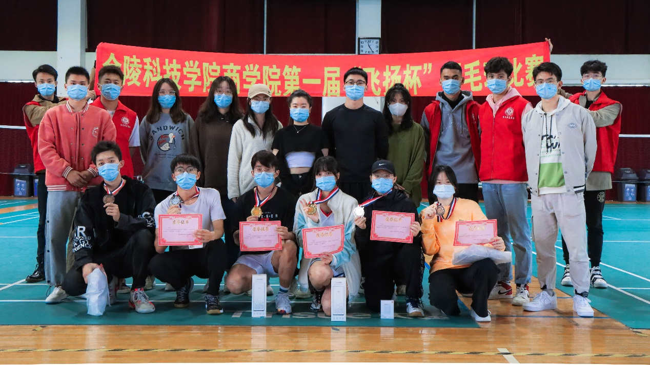 由商学院团总支学生会主办,商学院学生会体育部承办的“飞扬杯”羽毛球比赛于11月6日落下帷幕,团总支书记徐冰洁老师和学生会主席团成员周柯辰、代旭东、成念出席了本次比赛。本次比赛共有34名运动员参赛,采用21球一局制,两轮淘汰赛后,分别决出了男、女组8强。经过紧张的决赛,最终居永岭同学和沈涵郁同学分别获得男子组、女子组的冠军。