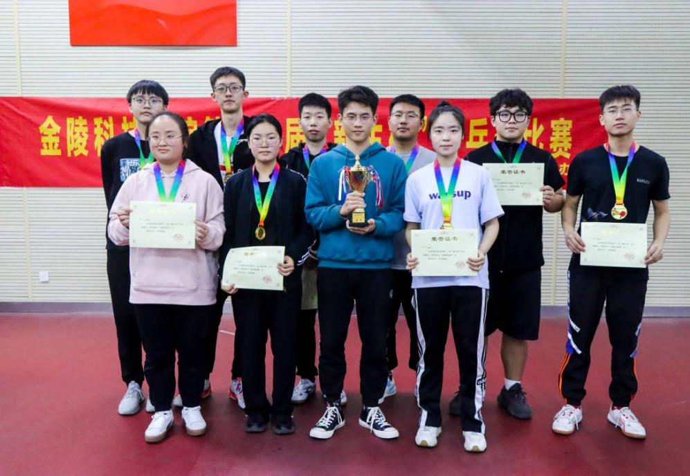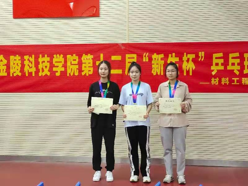 本次“新生杯”乒乓球团体比赛包括男单、女单、男双、混双共四项比赛,各参赛队大比分得到3分即为获胜。其中商学院由9位同学组成的参赛队在小组赛中稳定发挥,提前出线。半决赛中与材料工程学院苦战五局,最终以3:2艰难挺进决赛。决赛中,商学院同学放平心态,不轻敌,不惧敌,保持着高昂的斗志一举夺下冠军。