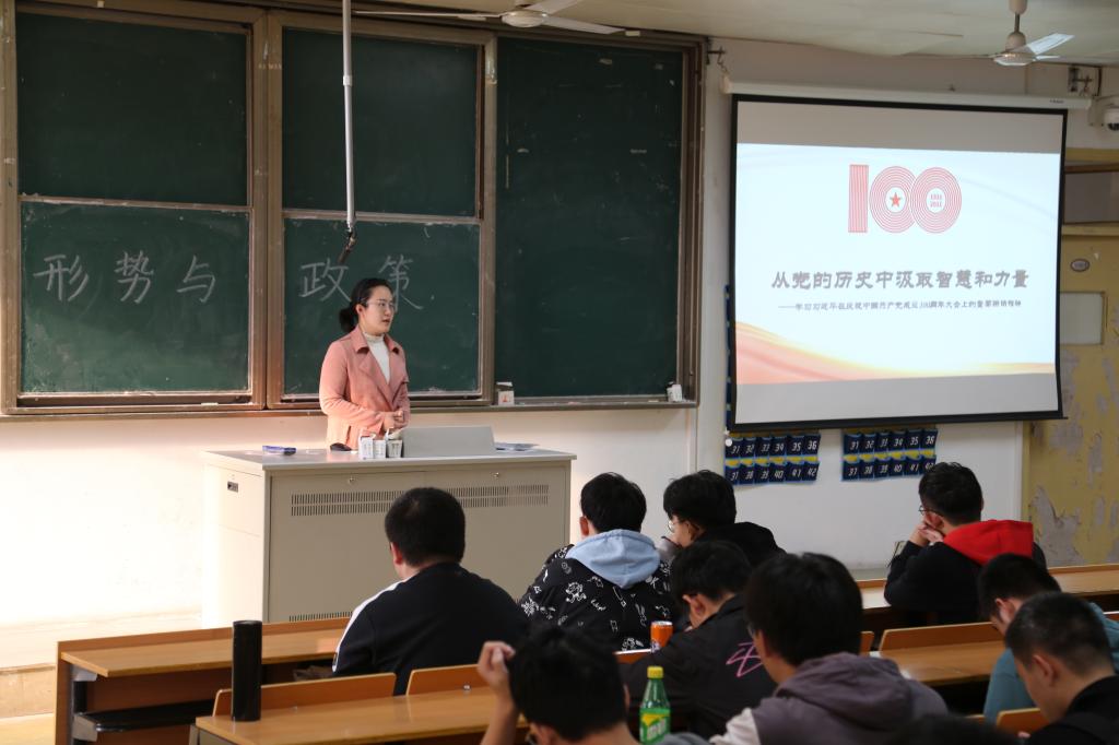 讲座伊始,沈老师介绍了习近平总书记在庆祝中国共产党成立100周年大会上的重要讲话内容。讲座中,沈老师重点讲解了百年党史和中国共产党取得的伟大成就,并和同学们进行了交流与讨论,鼓励同学们要从伟大建党精神中汲取力量,以史为鉴、开创未来,争做新时代党的事业的合格接班人。
