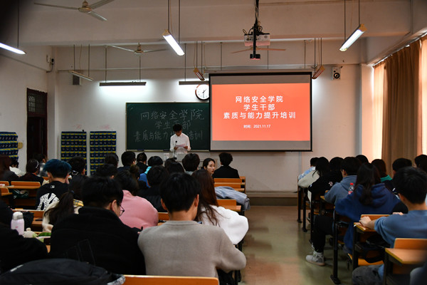 11月下旬至12月初,网络安全学院举办学生干部素质与能力提升培训大会。全体辅导员,团总支学生会全体成员,各班级班干部参加本次活动。