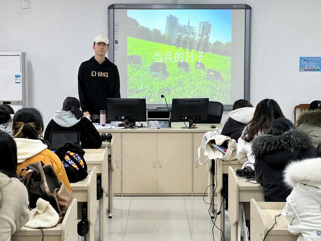 12月16日下午,外国语学院在8301语音室召开了退伍学生入伍经历分享会,外国语学院学工办副主任王奕,2020级两名退伍学生和2021级全体新生参加了会议。