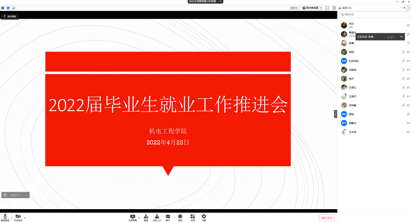 为进一步加强疫情影响下毕业生的就业指导与服务,全力做好毕业生就业工作,4月22日中午,学院召开2022届毕业生就业工作线上推进会。院党委书记吴钟鸣、院党委副书记张蓉、全体毕业班班主任、辅导员参加会议。